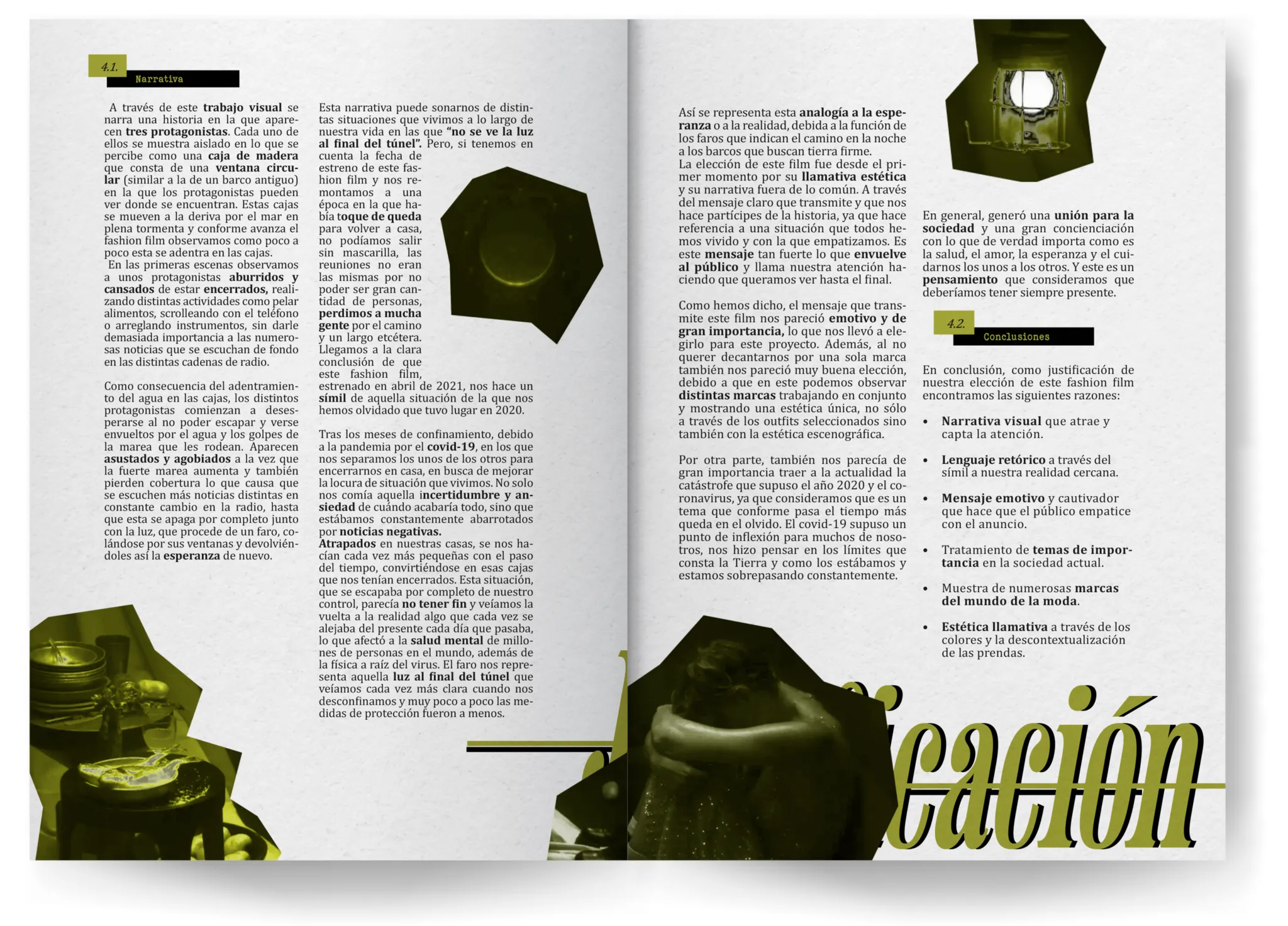 Este proyecto trata sobre una revista ficticia acerca de el fashion film creado por Vogue en 2020, con el contexto de la pandemia del covid-19.