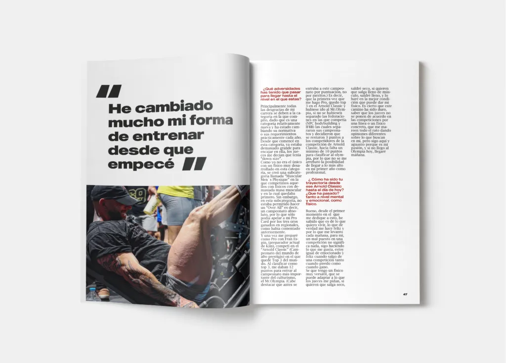 Está creada con el objetivo de dar visiblidad a este deporte ayudado del diseño editorial. Dedicada a aficionados al mundo del gimnasio y seguidores delfitness en general.